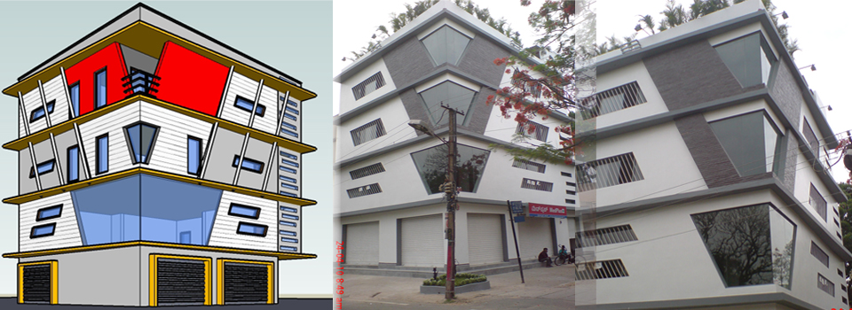 A 4200 sq. ft compact commercial building in an urban center with flexible planning which needed co-ordination and educating the builder’s team involved in their first of the kind project.